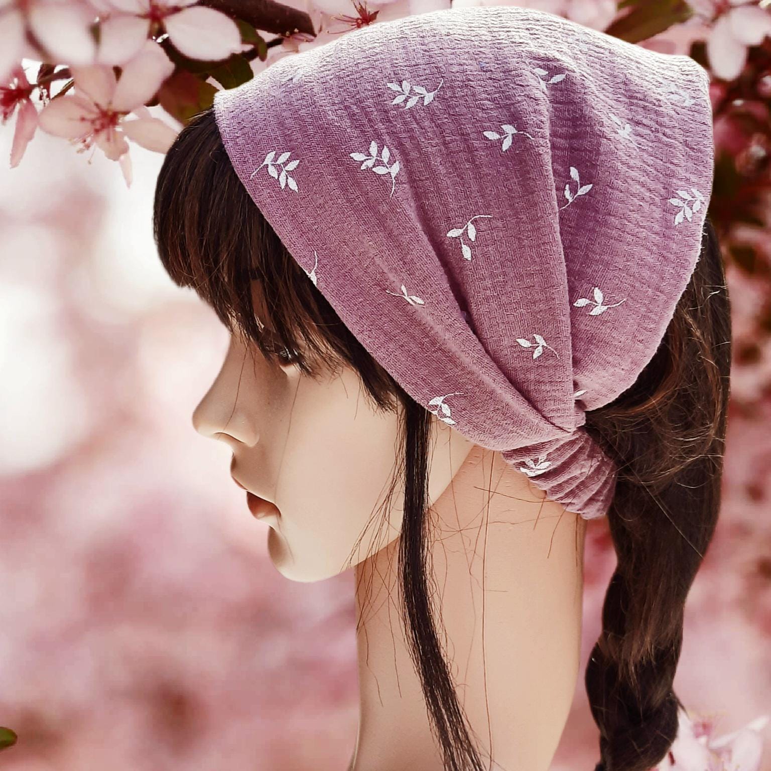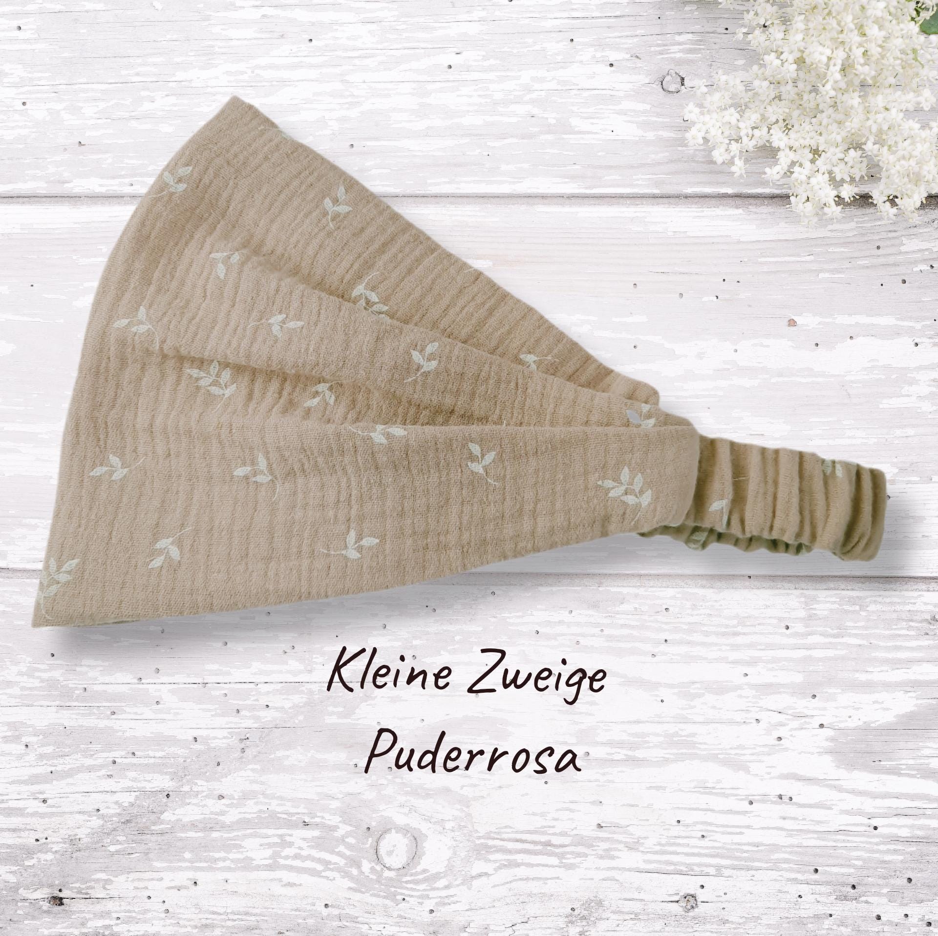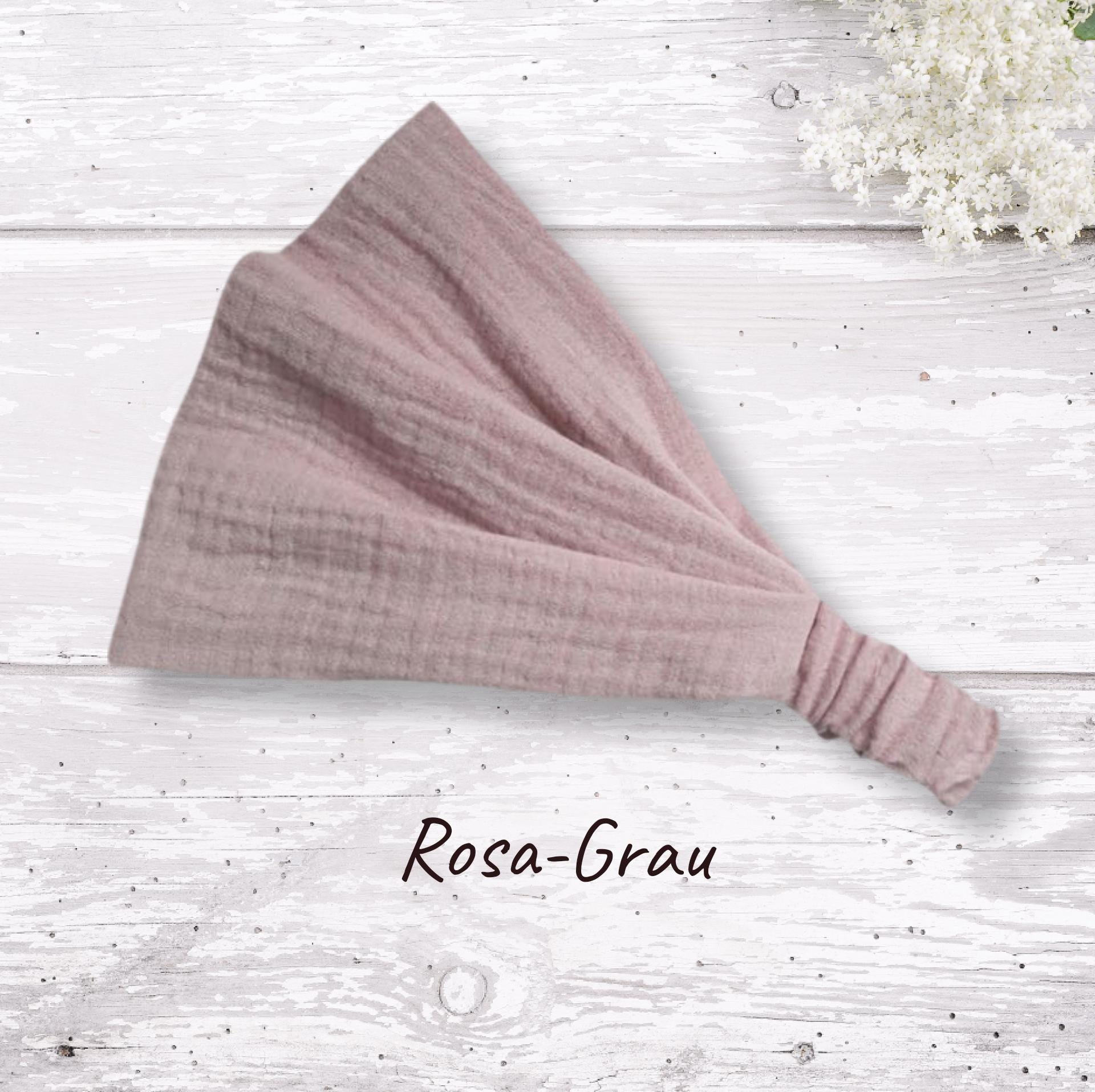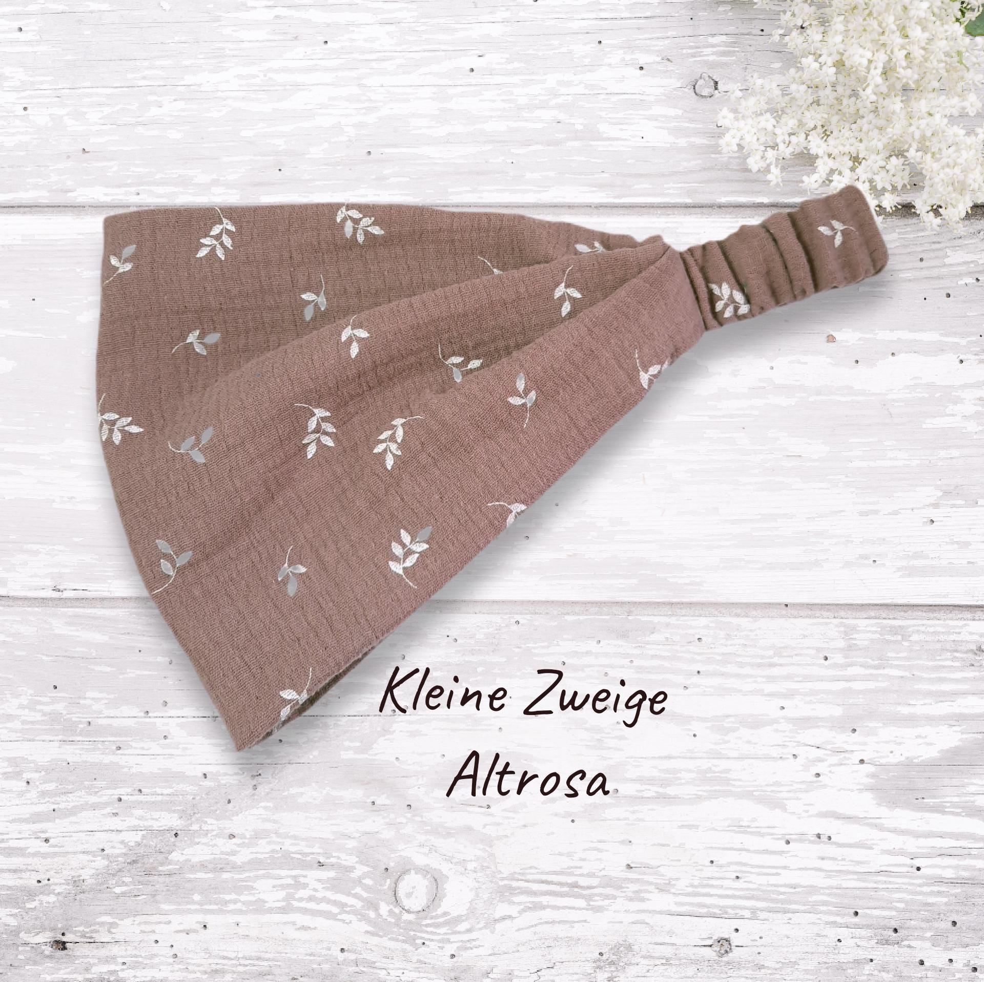 Bandana headband made of double gauze muslin. (Muslin is a very fine and soft double weave.)