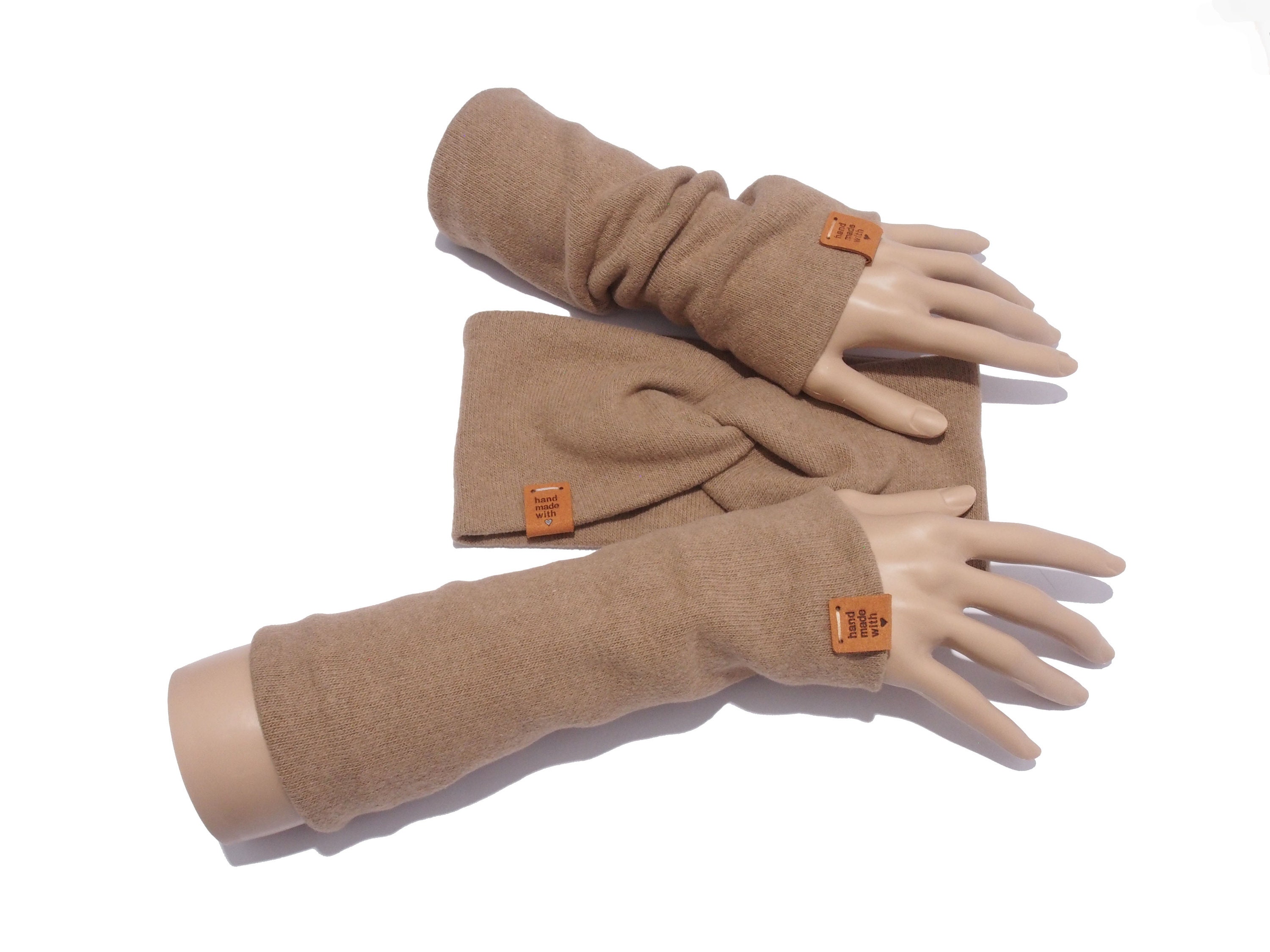 For these arm warmers I double-stitched a fine cotton knit fabric.