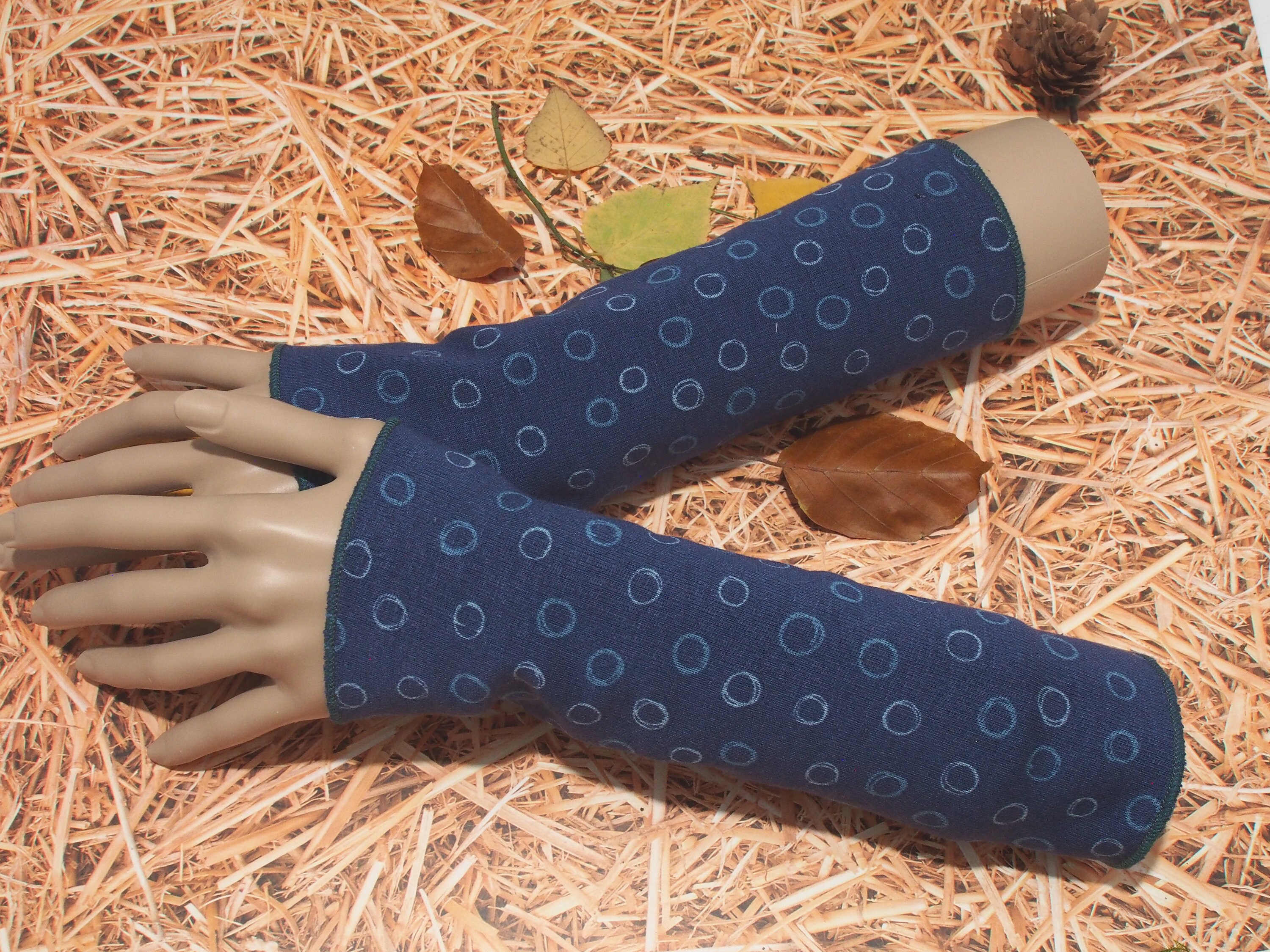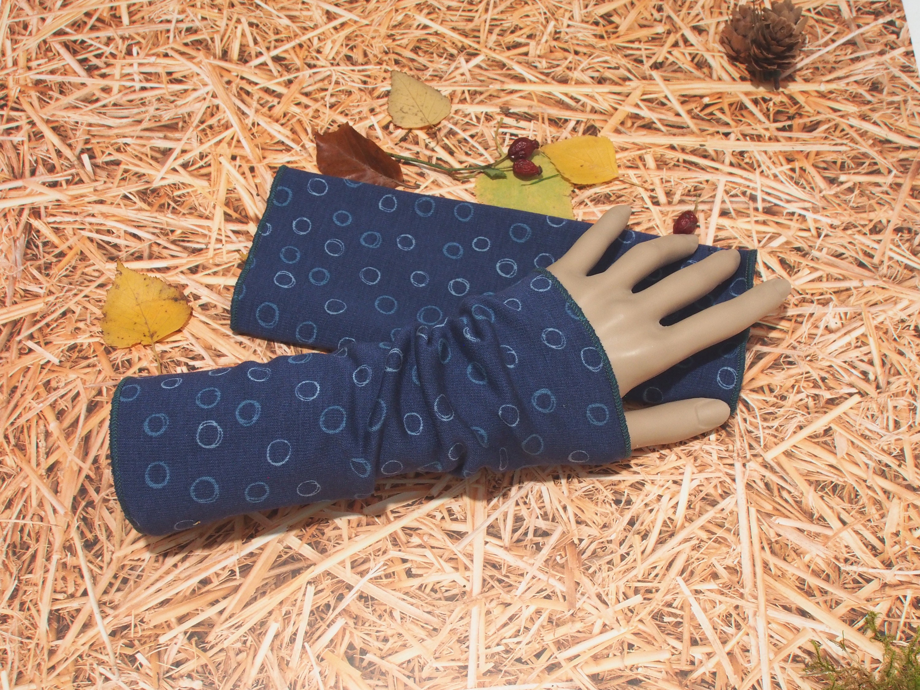 Hand warmers in dark blue pattern. Made from alpine fleece.