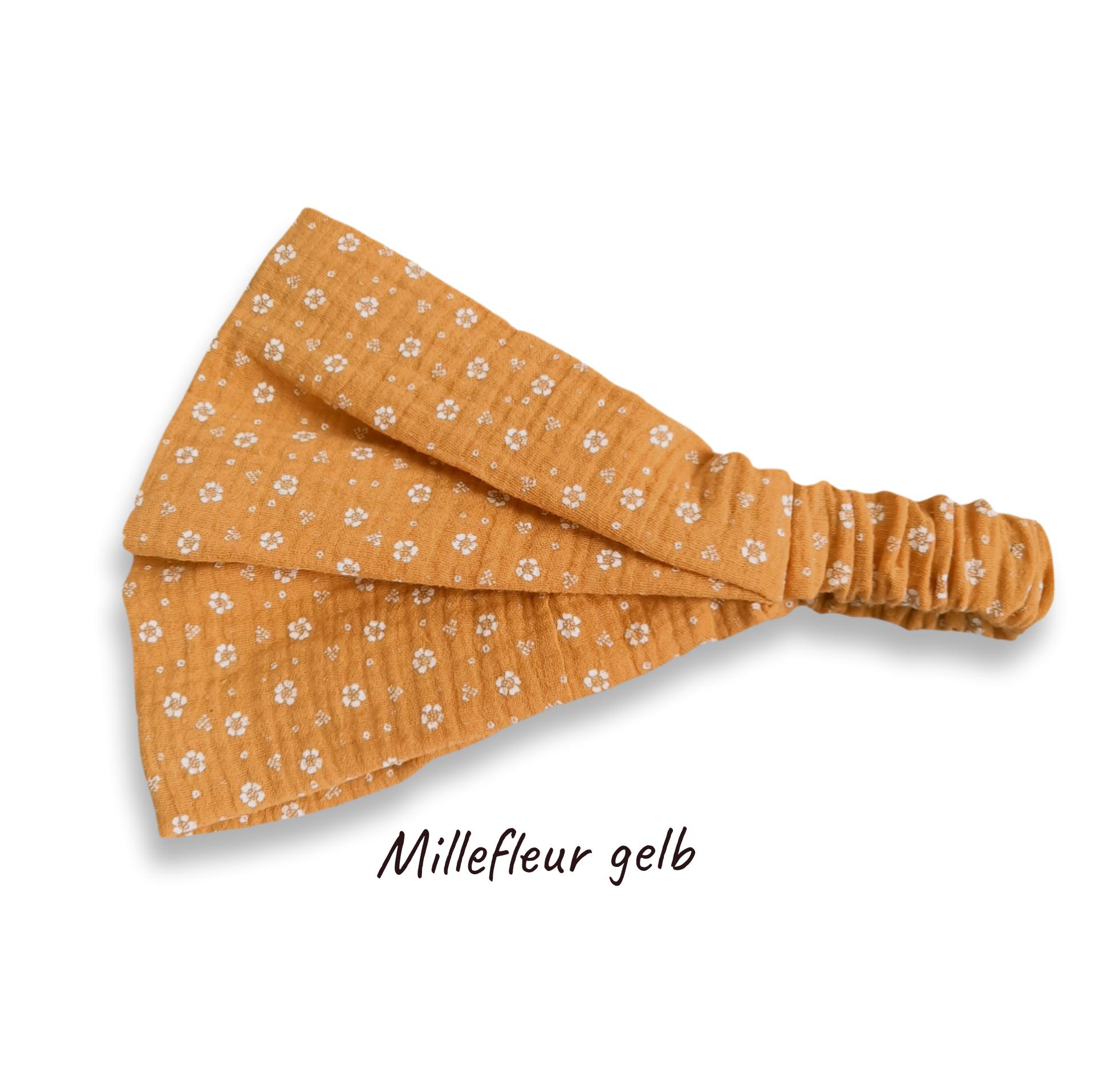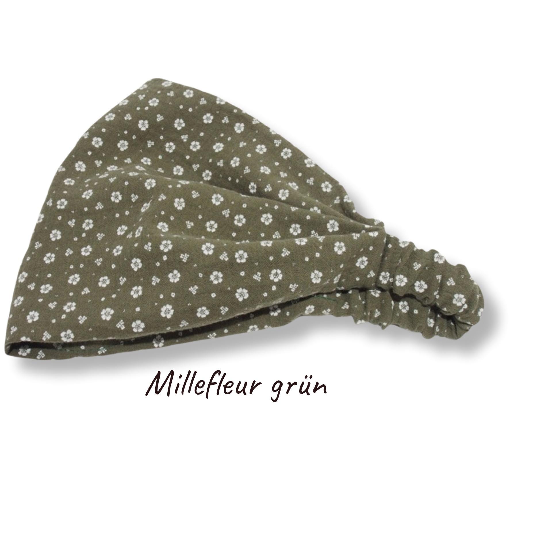 Bandana headband made of double gauze muslin. (Muslin is a very fine and soft double weave.)